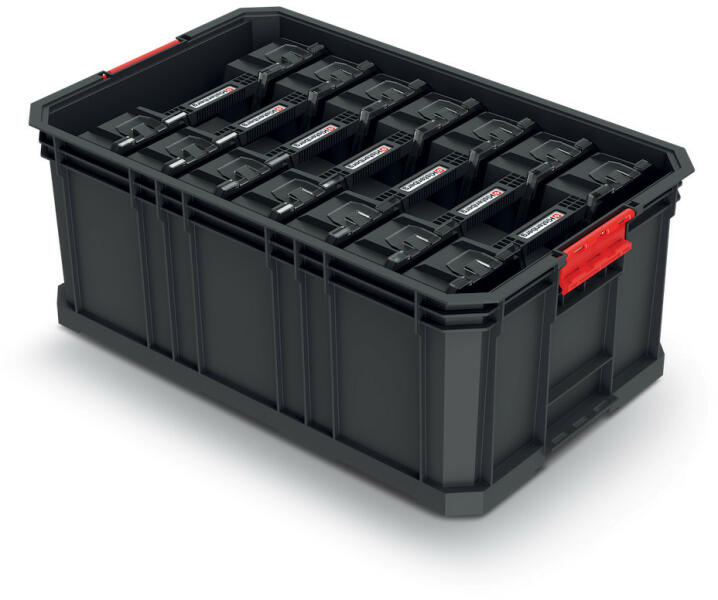 Megnövelt teherbírású és mélységű műhelykonténer. Ez a termék 7 független szervezőt tartalmaz. Testében beépített csatlakozók találhatók fém fülekkel, hogy a tartályt a sorozat többi egységéhez rögzítse. 4 rögzítőlyukkal rendelkezik a gyors és egyszerű falra szereléshez, és kompatibilis a Kistenberg 3400870 platformmal, valamint a 3400865 készlettel.