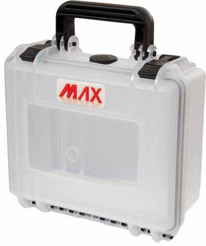 MAX Műanyag tok, 258x243xH 117,5mm, IP 67, átlátszó szín - belső méretek 235 x 180 x magas 106 mm - ellenáll a káros hatásoknak (víznek, pornak, ütésnek ellenáll) - IP 67 - felhasználási példa: horgászat, búvárkodás, fotózás, vadászat és egyebek - vízzáró tömítés a fedél körül - szelep az automatikus nyomásoldáshoz - könnyen nyitható dupla retesz - terhelésre