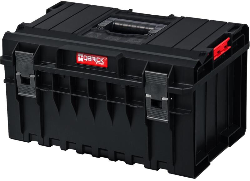 Szerszámbox QBRICK SYSTEM ONE 350 BASIC 2.0ONE 350 koffer 38 L-es űrtartalommal nagyszámú elektromos és kézi szerszám tárolására szolgál. A két állítható válaszfal segíti megtartani a rendet a box belsejében. A szerszámkoffer rugalmas tömítéssel van ellátva, amely védelmet nyújt a por és a víz ellen. A megerősített fedél és ház garantálja a nagy terhelhetőséget (