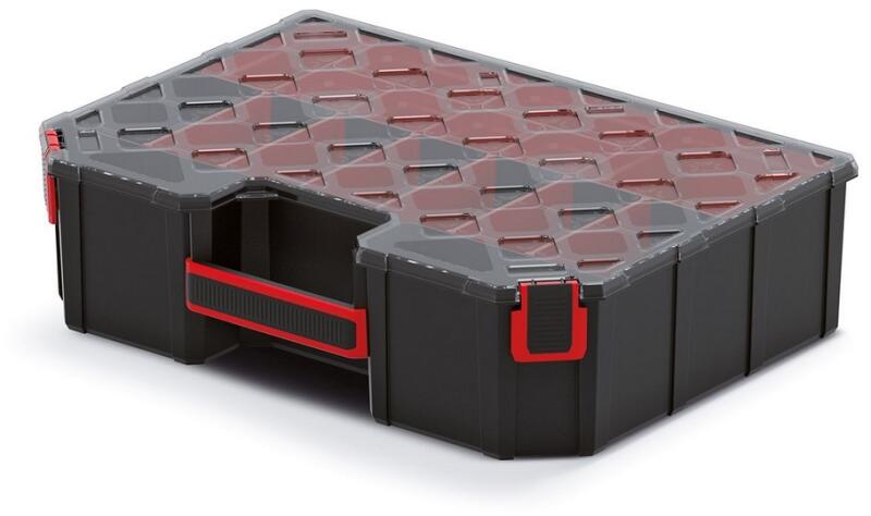 A szervezők praktikus módja annak, hogy a kisebb edényeket és alkatrészeket rendben tartsa, és ugyanakkor mindig kéznél legyen. Ez a modell eltávolítható válaszfalak és dobozok kombinációjával van felszerelve, amellyel a tárhelyet pontosan az Ön igényeihez igazíthatja. A tartós polikarbonátból készült átlátszó fedél megkönnyíti a megfelelő alkatrész megtalálását
