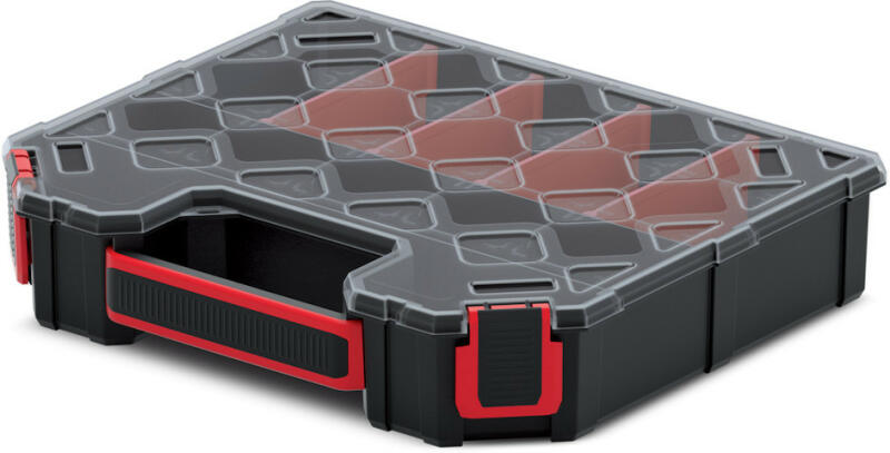 Szervező NUN12Szervező a jól bevált Nun termékcsaládból, ideális barkácsoláshoz és horgászokhoz, de otthonra is. Átlátszó, így tartalma mindig jól látható és könnyen hozzáférhető. A kapocsnak és a kényelmes fogantyúnak köszönhetően a tároló könnyen hordozható. Fizikai tulajdonságok: - külső méretek: 295 mm x 180 mm x 85 mm (hossz x szélesség x magasság) - r