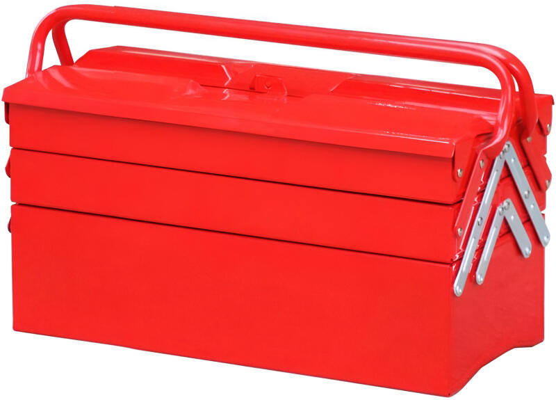 Hordozható szerszámosláda, 5 tároló rekesszel, kétszárnyas szétnyíló tetővel. Dupla fogantyúval. A láda lakattal zárható (nem tartozék!) Méretek: Teljes: 405x200x295mm (fogantyúval). Fogantyú nélkül 405x200x230mm 4db oldalsó rekesz: 400x95x45mm alsó rekesz: 400x200x100mm Csomagolási méret: 465x215x315mm Termék súlya: 4,24kg Professzionális szerszámtároló mely egyará