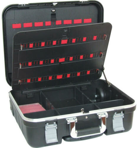Az öntött polipropilén táska anyaga rendkívül ellenálló a vegyi korrózió, az ütődés, a magas és az alacsony hőmérséklettel szemben A befecskendező gyártási eljárás biztosítja az egyenletes anyagvastagságot a sarkokban is A széles és vastag alumínium szegély révén a táska ideális a napi használatra és erős igénybevételre A táskában akár három szerszámtartó