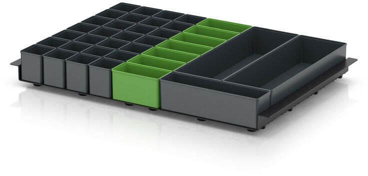 Felszerelés: 7. felszerelés Alapmérethez: 60 x 40 cm rács: 10x7 Anyaga: PS + ABS Index: B Feltöltés RAL 7016 28 x SB E 11 RAL 7016 1 x SB E 14