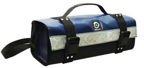 A fogantyúpántok a táska alja alatt vannak elvezetve, és megerősített varrással rendelkeznek 6 db gumiláb a stabilitás javítása érdekében 3 db belső zseb akkumulátoroknak 4Ah-ig, 2 db belső zseb akkumulátornak 6Ah-ig, 2 db belső zseb a töltőknek, 2 db külső zseb 45 x 24 x 33cm