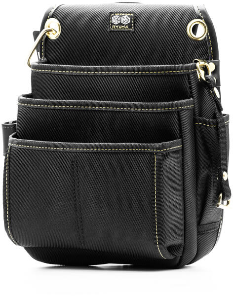 Övre erősíthető kézműves szerszámos táska a RYUMA márkától. A táska egy fémkarabinerrel és egy ragasztószalagos hurokkal érkezik. A RYUMA övtáska jellemzői: ✅ Övre való szerszámos táska ✅ Nejlonból és műbőrből készült ✅ Fémkarabiner és hurkok arany színben ✅ Arany színű varrás ✅ Párnázott ✅ Tartós, robosztus anyag ✅ Ikonikus megjelenés ✅ 8 fu