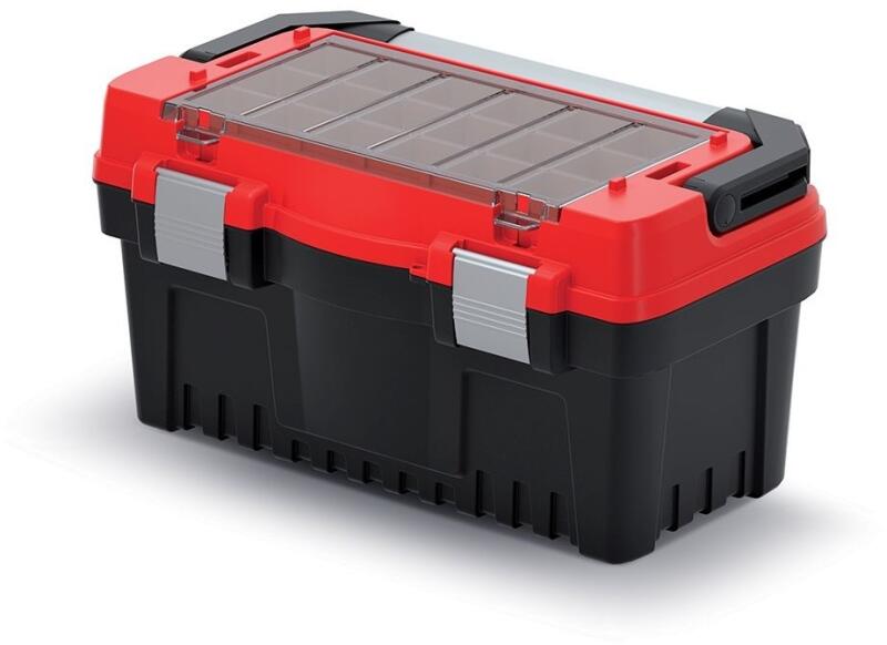 Ez az egyszerű szerszámtáska minden ezermesternek vagy ezermesternek jól jön. A konstrukció edzett műanyagból készült, amely mechanikai ellenállást és akár 12 kg-os teherbírást biztosít a doboznak. A fedelet két alumínium zár rögzíti. Mit kínál? Nagy dobozrendező átlátszó fedéllel Behelyezés a könnyebbség érdekében a tartalom elrendezése Rögzített alumínium fo