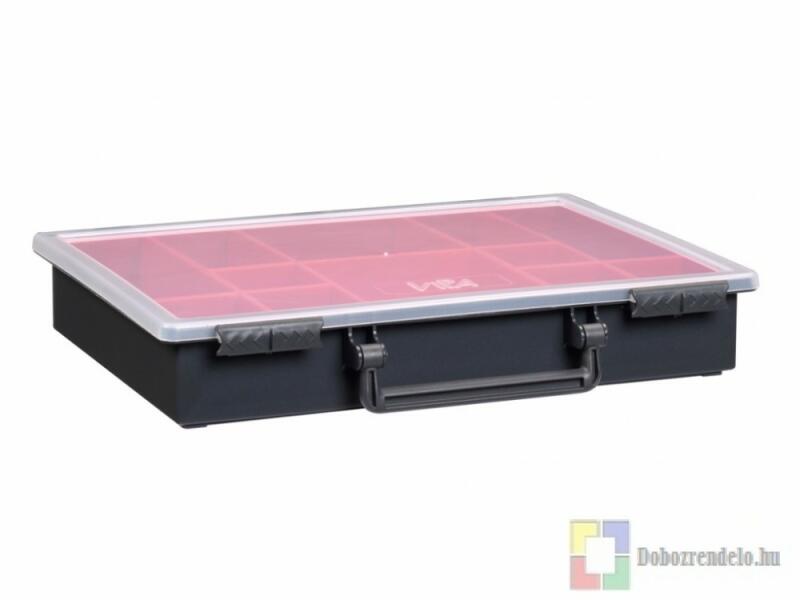 Egyedi kialakítású műanyag rendszerező doboz. A benne lévő kis piros rekeszek kivehetőek, ezzel megkönnyítve a benne lévő apró alkatrészek kivételét. Ipari és otthoni felhaszná... Egyedi kialakítású műanyag rendszerező doboz. A benne lévő kis piros rekeszek kivehetőek, ezzel megkönnyítve a benne lévő apró alkatrészek kivételét. Ipari és otthoni felhasználásra i