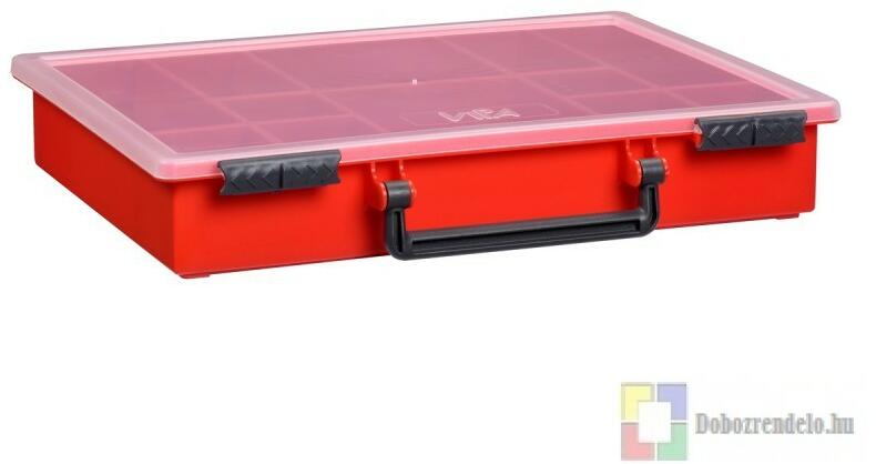Egyedi kialakítású műanyag rendszerező doboz. A benne lévő kis piros rekeszek kivehetőek, ezzel megkönnyítve a benne lévő apró alkatrészek kivételét. Ipari és otthoni felhaszná... Egyedi kialakítású műanyag rendszerező doboz. A benne lévő kis piros rekeszek kivehetőek, ezzel megkönnyítve a benne lévő apró alkatrészek kivételét. Ipari és otthoni felhasználásra i