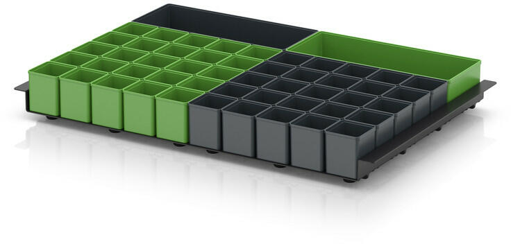Felszerelés: 9. felszerelés Alapmérethez: 60 x 40 cm rács: 10x7 Anyaga: PS + ABS Index: B Feltöltés RAL 7016 25 x SB E 11 RAL 7016 1 x SB E 25