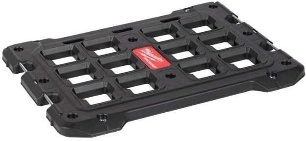 Többféle rögzítési beállítás. Fordítsa a PACKOUT -ot álló tárolóba. 45 kg-os padlóra szerelhető súly. 22 kg fali teherbírás. Csatlakoztatható minden Milwaukee PACKOUT moduláris tárolóhoz. Ütésálló polimer konstrukció.