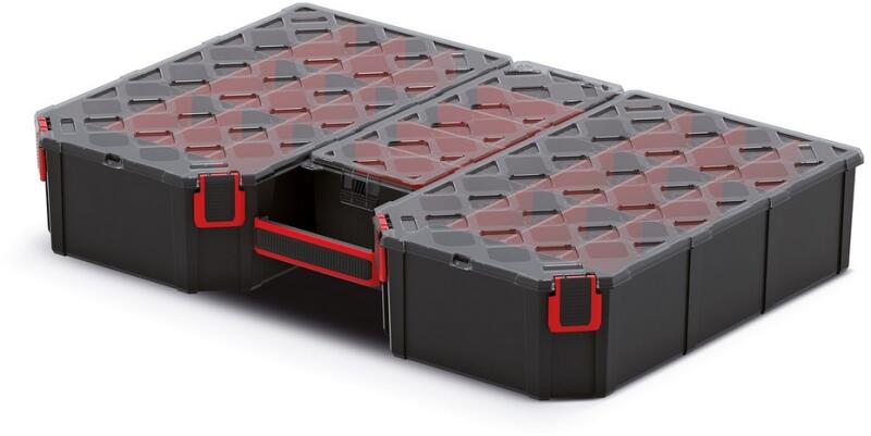 A szervezők praktikus módja annak, hogy a kisebb edényeket és alkatrészeket rendben tartsa, és ugyanakkor mindig kéznél legyen. Ez a modell eltávolítható válaszfalakkal van felszerelve, amelyek segítségével pontosan az Ön igényeihez szabhatja a tárhelyet. A tartós polikarbonátból készült átlátszó fedél megkönnyíti a megfelelő alkatrész megtalálását annak kinyitás