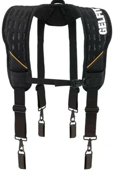 A vállpánt a Toughbuilt Heavy Duty övhöz használható. A pánt belső része párnázott, a hevederek hossza állítható, így még jobban elosztja a nehéz övtáska súlyát a mindennapos használat során.