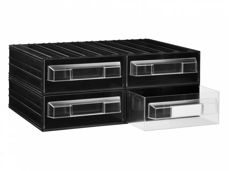 Fiókos tároló rendszer 4db extra nagy fiókkal. Önállóan is használható, de az egységek egymáshoz rögzíthetőek a hornyok segítségével. A fiókokba belső elválasztó dobozokat ... Fiókos tároló rendszer 4db extra nagy fiókkal. Önállóan is használható, de az egységek egymáshoz rögzíthetőek a hornyok segítségével. A fiókokba belső elválasztó dobozokat lehet tenn