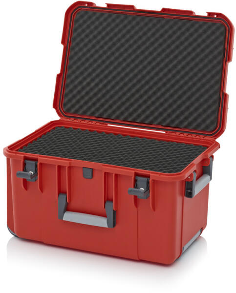 Víz és por ellen hermetikusan szigetelt, zárható műanyag szerszámos láda. Méretei: -Szélesség: 1100 mm -Magasság: 450 mm -Mélység: 490 mm Erősített falú, három záras.
