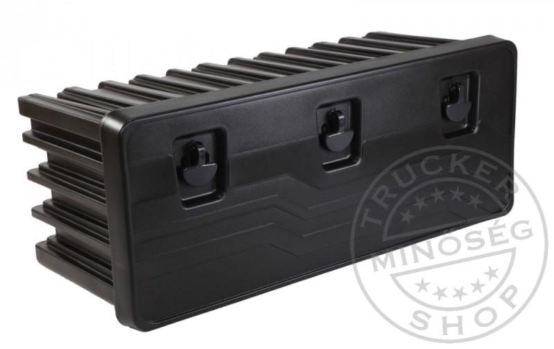 Víz és por ellen hermetikusan szigetelt, zárható műanyag szerszámos láda. Lépcsős kialakítású, alváz alá is benyúlik. Szélessége: 65 cm Magassága: 52 cm Mélysége: 45 cm (alvázig), (67 cm alul) 22 cm magas alvázmerevítő gerendához kialakítva. Németországban gyártott prémium kategóriájú termék.