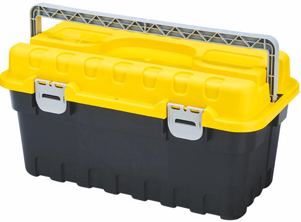 Szerszámos láda erősítet műanyag 21" STRONG A műanyag láda méretei: 535 × 276 × 267 mm Belső szortiment tárolóval rendelkezik Amíg a fogantyú függőleges helyzetben van, a fogantyú a fedelet a ládához rögzíti és elkerüli a kinyílást még akkor is, ha a zárócsatokat kinyitják. ( szerszámok nélkül ) Kód:35021