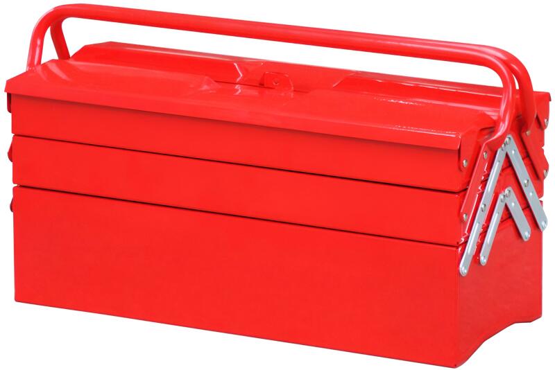 Hordozható szerszámosláda, 5 tároló rekesszel, kétszárnyas szétnyíló tetővel. Dupla fogantyúval. A láda lakattal zárható (nem tartozék!) Méretek: Teljes: 495x200x295mm (fogantyúval). Fogantyú nélkül: 495x200x230mm 4db oldalsó rekesz: 490x95x45mm alsó rekesz: 490x200x100mm Csomagolási méret: 560x230x330mm Termék súlya: 5,22kg Professzionális szerszámtároló mely egyar