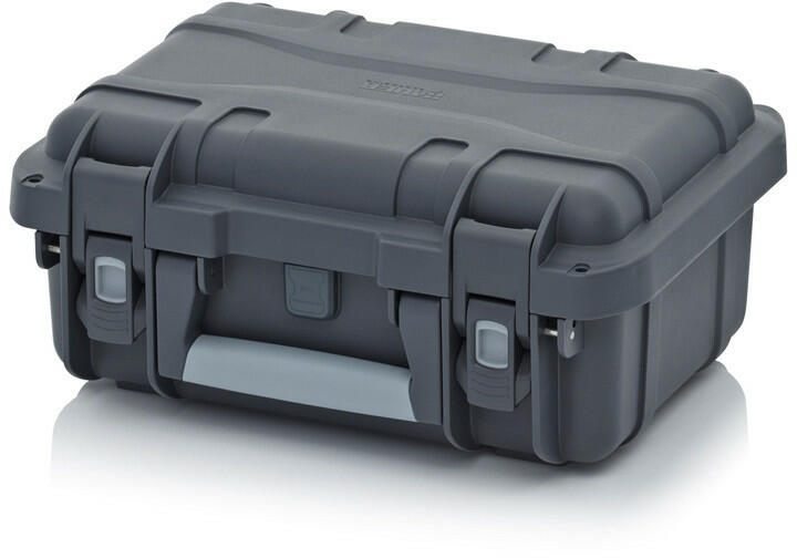 1 lid tool pallet with elastics on one side 1 bottom tool pallet with elastics on one side 1 central lock with key 2 composite latches 2 metal lid safety support stays 1 metal hinge for maximum strenght Bi-component soft touch handle Document area Botton area with 2 organizers (165x110x30 mm) for small components