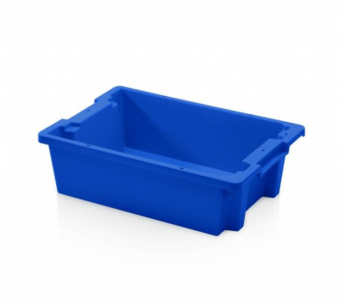 A rakásolható ládák alkalmasak élelmiszerek (tanúsított) tárolására és szállítására. Eg... A rakásolható ládák alkalmasak élelmiszerek (tanúsított) tárolására és szállítására. Egymásba rakhatók - egyszerűen elfordítva az üres ládákat egymásba helyezheti, ezzel helyet takaríthat meg. Zárt láda, zárt fogantyúk, sima fal és alj. Jellemzők : Szín kék Anya