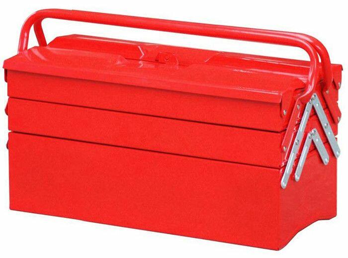 Hordozható szerszámosláda, 3 tároló rekesszel, egyszárnyas felhajtható tetővel. A láda lakattal zárható (nem tartozék!) Professzionális szerszámtároló mely egyaránt kiváló műhelyi, és helyszíni szerelésekhez is. Méretek: Teljes méret: 465x210x170 mm 2 db oldalsó rekesz: 460x100x65 mm alsó rekesz: 460x200x100 mm Csomagolási méret: 485x255x220 mm Szélesség: Teljes: 465