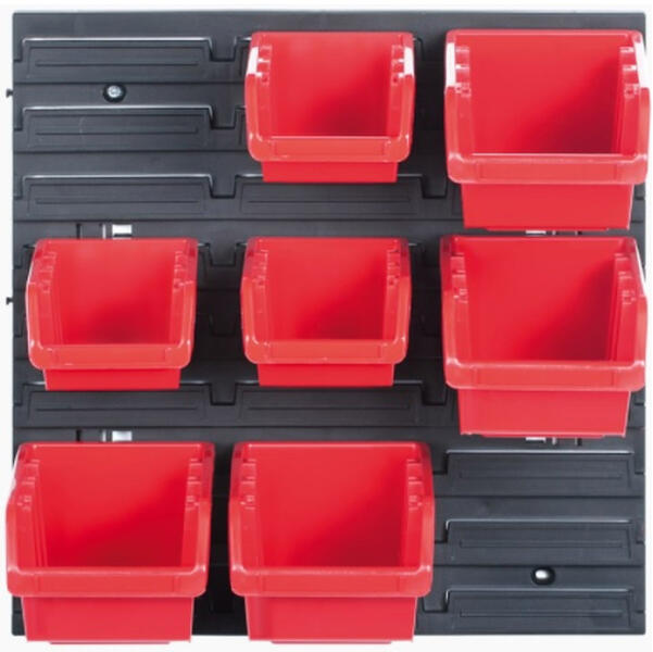 KISTENBERG ORDERLINE fali szerelőpanel 7 db tárolóval, 40 x 16,5 x 40 cm KOR5 Jellemzők: - Hosszúság: 40 cm - Szélesség: 16,5 cm - Magasság: 40 cm - Anyag: műanyag - Súly: 800 g A csomag tartalma: - 1 db KBBS40-S411 fali szerelőpanel - 3 db KTR6-3020 tárolódoboz - 4 db KTR8-3020 tárolódoboz