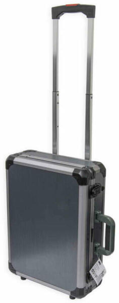 Bõrönd 465x345x142 mm kerekeken, AL kivitel. Nincsenek eszközök. Belsõ méretek: kb. 450 x 330 x 120 mm.