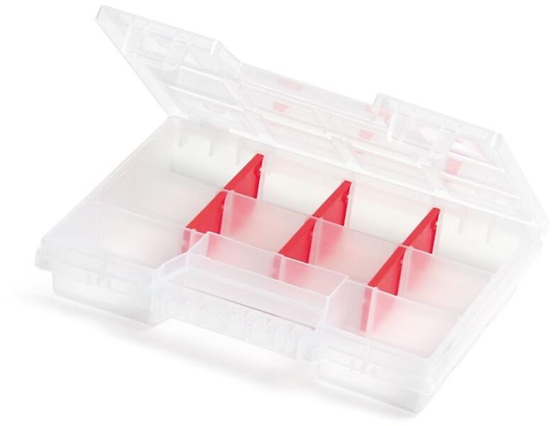 A szervezők praktikus módja annak, hogy a kisebb edényeket és alkatrészeket rendben tartsa, és ugyanakkor mindig kéznél legyen. Ez a modell eltávolítható válaszfalakkal van felszerelve, amelyek segítségével pontosan az Ön igényeihez szabhatja a tárhelyet. A tartós műanyagból készült átlátszó fedél megkönnyíti, hogy felnyitás nélkül is megtalálja a megfelelő alkatr
