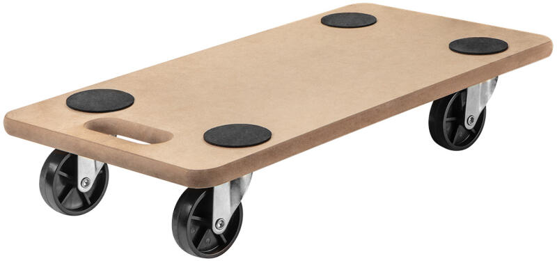 A NEO TOOLS kerekes anyagmozgató kocsi egy praktikus és erős eszköz a nehéz és kényelmetlen tárgyak, például bútorok vagy háztartási gépek könnyű mozgatásához. A termék jellemzői a következők: Terhelhetőség: Max. 200 kg, Plató mérete: 575 x 290 x 11 mm, Plató anyaga: Erős MDF, Elforgatható kerekek: 4 db, Elforguló járókerekek: 360°-os elforgulási képességgel, Al
