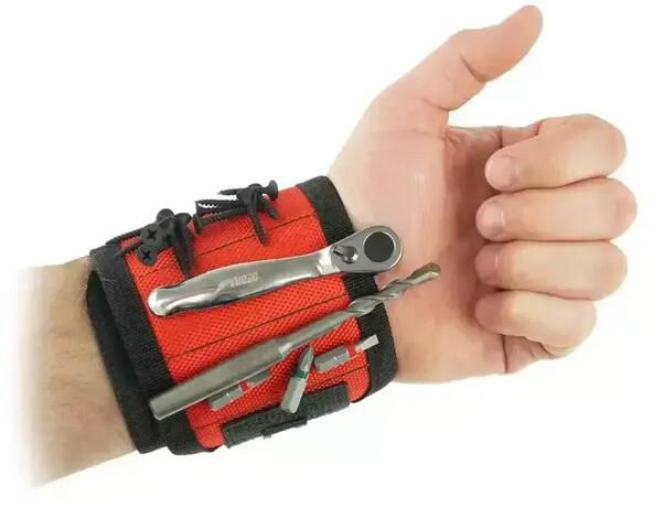 DEDRA N 0030 magnetikus csuklópánt, csuklóra állítható Ez egy praktikus kiegészítő olyan munkákhoz, aholnem fér hozzá könnyen szerszámosládához vagy pisztolytáskához. A karszalag anyaga 1680D poliészter szövet, oxfordi szövéssel, amely nagyk o p ás á l l ó s á g o t garantál. A pánt 3 erős N 38 ney mágnessel van felszerelve, ami azt jelenti, hogy az apró fémtárgyak