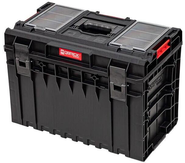 Szerszámbox QS ONE 450 2.0 PROFIONE 450 2.0 Profi koffer 52 L-es űrtartalommal nagyszámú elektromos és kézi szerszám tárolására szolgál. A két állítható válaszfal segíti megtartani a rendet a box belsejében. A szerszámkoffer rugalmas tömítéssel van ellátva, amely védelmet nyújt a por és a víz ellen. A megerősített fedél és ház garantálja a nagy terhelhetőséget (5