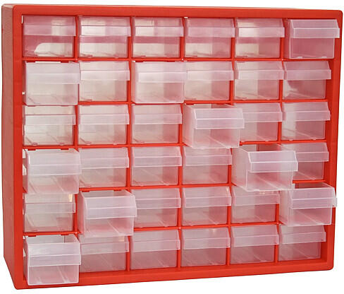 A StrendPro fali rendezo egyszeruen nem hiányozhat a muhelyfelszerelésbol. A 36 fióknak köszönhetoen praktikus és áttekintheto tárolóhelyet biztosít a csavarok, anyák, alátétek és hasonló anyagok számára, PVC-bol készült és maximális teherbírása 25 kg. Méretei 40,5 x 30,5 x 65 cm.