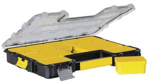 Kivehető rekeszek ideálisak kisebb tárgyak tárolására. Törhetetlen átlátszó tok fedele. A praktikus fogantyú kényelmes szállítást biztosít.