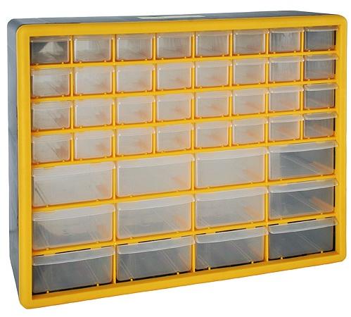 A Strend Pro fali szervező nem hiányozhat a műhelyéből. A 44 fióknak köszönhetően praktikus és áttekinthető tárolást biztosít a csavarok, anyák, alátétek és hasonló anyagok számára. PVC-ből készült, és maximális terhelhetősége 28 kg. Méretei 50x16x39 cm. Anyaga: PVC Súly: 3,25 kg Ez egy automatizált szoftver általi fordítás. HIbát találtál a termékleírásban