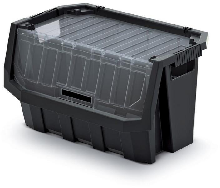 Ebben a csomagban egy 39,6 x 29 x 28 cm méretű tárolódobozt (hossz x szélesség x magasság) találsz védőburkolattal. fedél, amely segít rendet tartani a műhelyben vagy a garázsban, és ugyanakkor mindent kéznél tarthat. Méretei miatt ideális nagyobb tárgyak, például kéziszerszámok tárolására. Az azonos méretű dobozok egymásra rakhatók és alkalmasak afalra rögzítésr