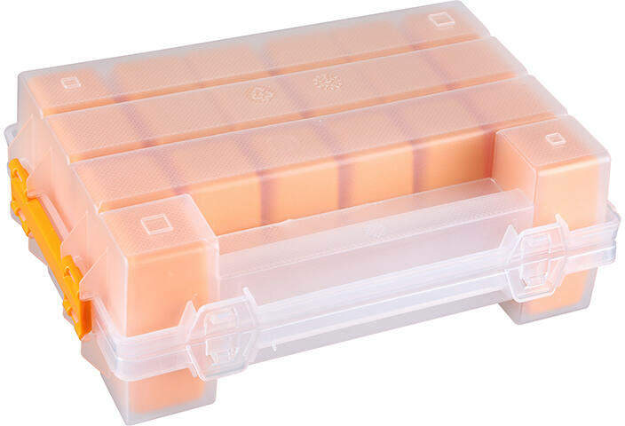 Kompakt és praktikus iker rendszereződoboz Erős, ütés és olajálló átlátszó műanyagból Strapabíró zárórendszer Átlátszó fedéllel Variálható rekeszek A nagy ütésállóságú kopolimer PP jól ellenáll a legtöbb szervetlen savnak, lúgnak és sónak, különösen a kénvegyületeknek, maró és higiéniai szennyvíznek. Az ellenállás függ a koncentrációtól, hőmérsé