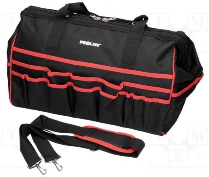 49 zseb (10 belsõ és 39 külsõ)Kényelmes, vállra akasztható, állítható hosszúságú szíj, fogantyúval, cipzárralRendkívüli ellenállású POLIESTER 600 D anyag
