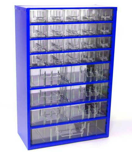 MARS szekrény alkatrésztároló 27 fiókos fém piros 460 x 306 x 145 mm 6720C A termék jellemzői: Teljes méret: 460 x 306 x 145 mm ( a fiók kihúzása esetén 155 mm ) Szekrény anyaga: acéllemez porbevonattal Fiókok Anyaga: műanyag 20 db M jelű kicsi, 6 db S jelű közepes és 1 db "V" jelű nagy fiók Ez tökéletes megoldás mindenféle apró dolgoknak mint például a kis méretű g