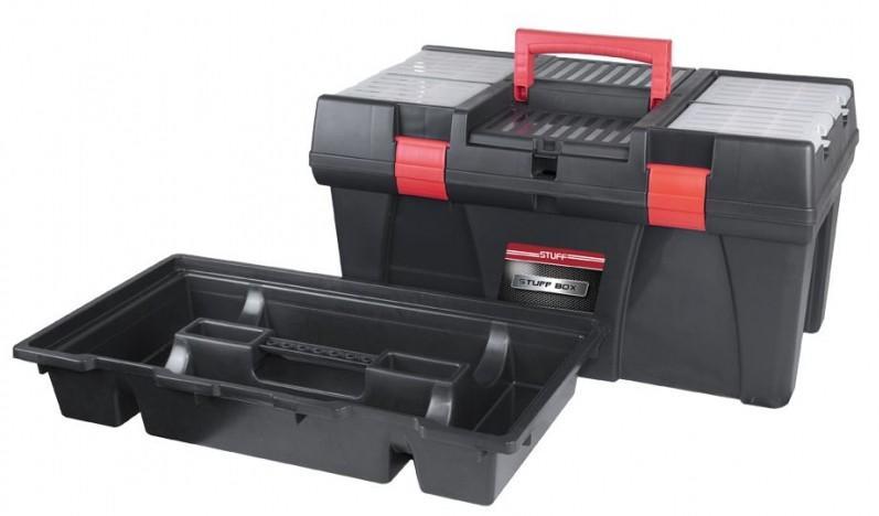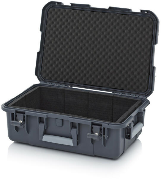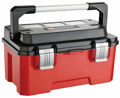 Műanyag szerszámos dobozok rekeszekkel és tálcákkal. 6 kivehető rekesz az apró alkatrészek tárolására. 2 bittartó a tálca mindkét oldalán. Nem áll fenn a csavarok kiszóródásának veszélye szállítás közben. Önkioldó tálca kivehető tálcákkal az apró alkatrészek tárolására . Tömítés IP54 védettségi fokozattal. Alumínium fogantyú. Korózióálló fém kapcsok.