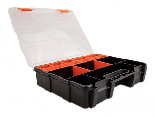 Anyag: PP Méret: 490x420x115 mm Rekeszek száma:12 (4x nagy, 8x kicsi) Rekesz méret:160x110x95/110x80x95 mm
