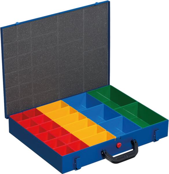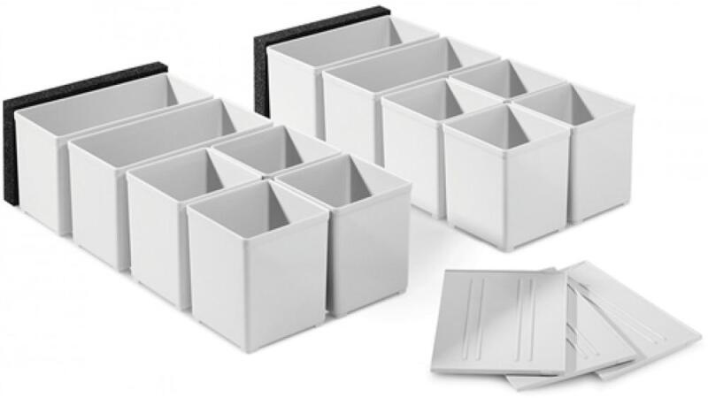 A fogyóanyagok és kis alkatrészek áttekinthető rendezése és tárolása Betétdobozok és rekeszosztók a fiók egyedi felosztásához Szállítási terjedelem: 8 db 60x60x71mm 4 db 60x120x71mm 3 db rekeszosztó 2 db rögzítőfilc Nylon tasakban szállítva Méret (HxSZxM): 396 x 296 x 322 mm Súly: 5,7 kg