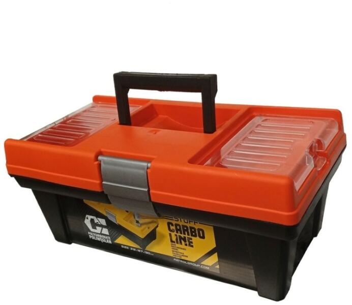 Szerszámosláda 16" alumínium csattal és fogantyúval Mérete: 16" / 405 mm Anyaga: műanyag Alumínium csat Tetőrekeszekkel M rete: 39 x 18 x 19 cm