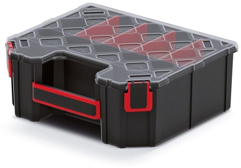 A szervezők praktikus módja annak, hogy a kisebb edényeket és alkatrészeket rendben tartsa, és ugyanakkor mindig kéznél legyen. Ez a modell eltávolítható válaszfalakkal van felszerelve, amelyek segítségével pontosan az Ön igényeihez szabhatja a tárhelyet. A tartós műanyagból készült átlátszó fedél megkönnyíti, hogy felnyitás nélkül is megtalálja a megfelelő alkatr