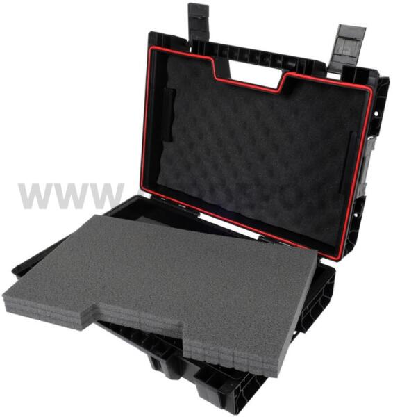 Yato szerszámkoffer habszivacs betéttel 450x322x126 mm Kompakt szerszámtároló négyrétegű habbal és védőszivaccsal. Elektromos szerszámok biztonságos tárolására és szállítására tervezték. A habtöltés pontosan a tárolt tárgyakhoz igazítható. A koffer szilárdan és szorosan zárható a két poliamid kapocsnak köszönhetően. Az oldalsó csatlakozók lehetővé teszik az