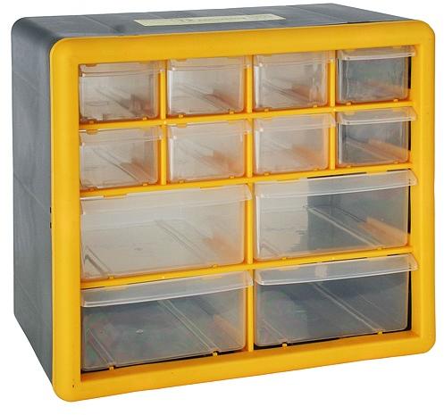 A Strend Pro fali szervező nem hiányozhat a műhelyéből. A 12 fióknak köszönhetően praktikus és áttekinthető tárolást biztosít a csavarok, anyák, alátétek és hasonló anyagok számára. PVC-ből készült, és maximális terhelhetősége 12 kg. Méretei: 26,5x16x23,5 cm Anyaga: PVC Súly: 1,18 kg Ez egy automatizált szoftver általi fordítás. HIbát találtál a termékleírá