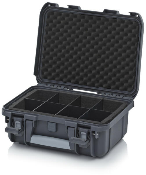 MAXI műanyag koffer műanyag táska tároló védőtok fogantyúval 555 x 428 x 211 mm fekete MAX505S – Belső méret: 555 x 428 x 211 mm – Behúzható fogantyú kerekekkel – Víz, por, és ütésálló – IP 67 – Alkalmas például: horgászat, búvárkodás, lövészet, vadászat stb. – Vízhatlan tömítések a fedél körül – Automatikus kioldószelep – Könnyen kinyitható ke