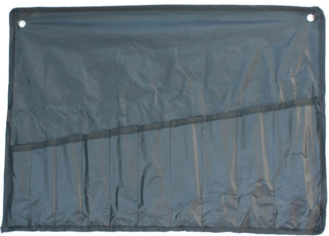 10 különböző méretű csillagkulcs, 12 különböző méretű villáskulcs illetve 12 és 20 különböző méretű csillag-villáskulcsnak kialakított hely Strapabíró poliészter gyöngyvászon szövet Megerősítő varrásokkal Fekete színben Cikkszámmegnevezés200101-058810r. (csillagkulcs) Alkalmazási terület Saját összeállítású csillagkulcs, csillag-villás kulcs készlet tá