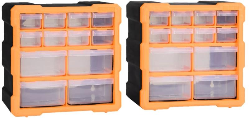 vidaXL 2 db többfiókos szervező 12 fiókkal 26,5 x 16 x 26 cm Ezek a nélkülözhetetlen többfiókos szervezők összesen 24 fiókkal rendelkeznek és a legkülönfélébb tárgyak rendezett tárolására szolgálnak. Varróeszközök vagy szögek tárolására is használhatóak. Mindegyik tárolóegység 8 kis fiókot és 4 közepes fiókot tartalmaz az Ön különféle igényeinek kielégí