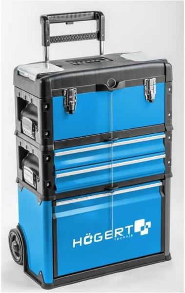 HÖGERT Szerszámos kocsi, 3 fiókkal, 52 x 32 x 72 cm (HT7G080) Termék információ: Anyaga : PP acél Méret: szélesség: 520 mm, magasság: 720 mm, hosszúság: 320 mm Három részes kocsi egy dobozzal, fiókokkal és egy tágas rekesszel, akár 45 kg szerszámot is képes szervezetten tárolni Beépített kerekek és a teleszkópos összecsukható fogantyú Felső doboz 420 x 220 x 150 mm é
