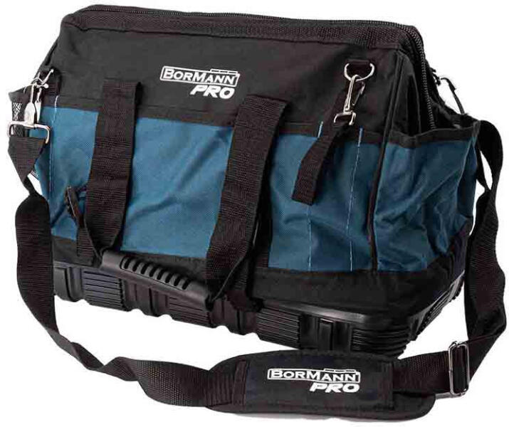 Szövettáska a ΒΟRΜΑΝΝ PRO-tól Vízálló 600D szövetből készült. Kemény alj hosszabb élettartammal. Méretek: H41xSz22xM32cm Szövet anyaga: Vízálló 600D Oxford Tartalmazza: Gumi markolatvédő, Fém erősítések, Kemény műanyag, nagy szilárdságú talp